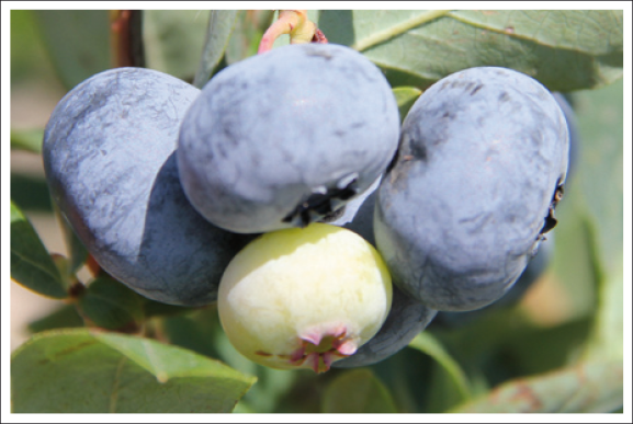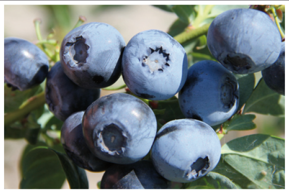 Bluecrop – Medium-ripening variety, berry are in large and loose clusters. Berries are large, spherical, slightly flattened, firm and vinous. The skin is heavily covered with light blue coating. Small scar.